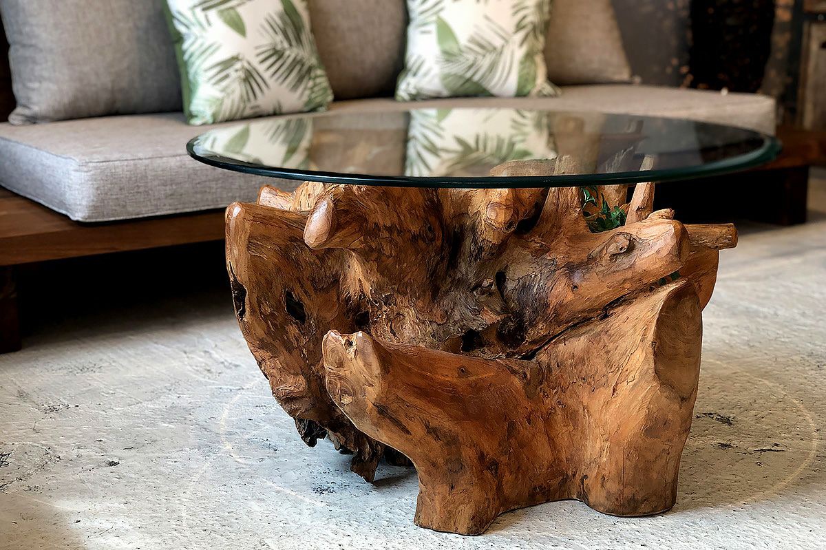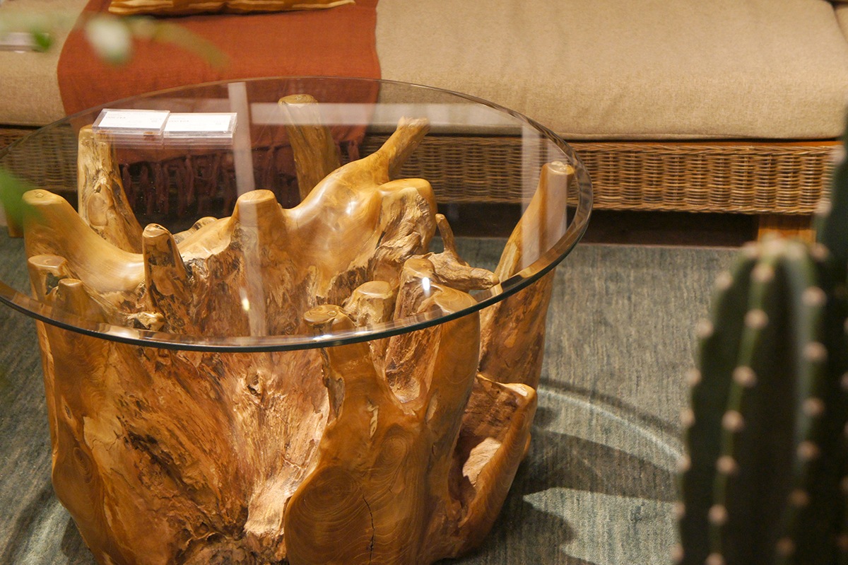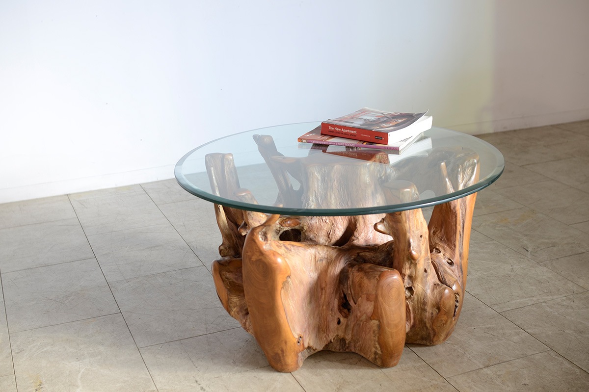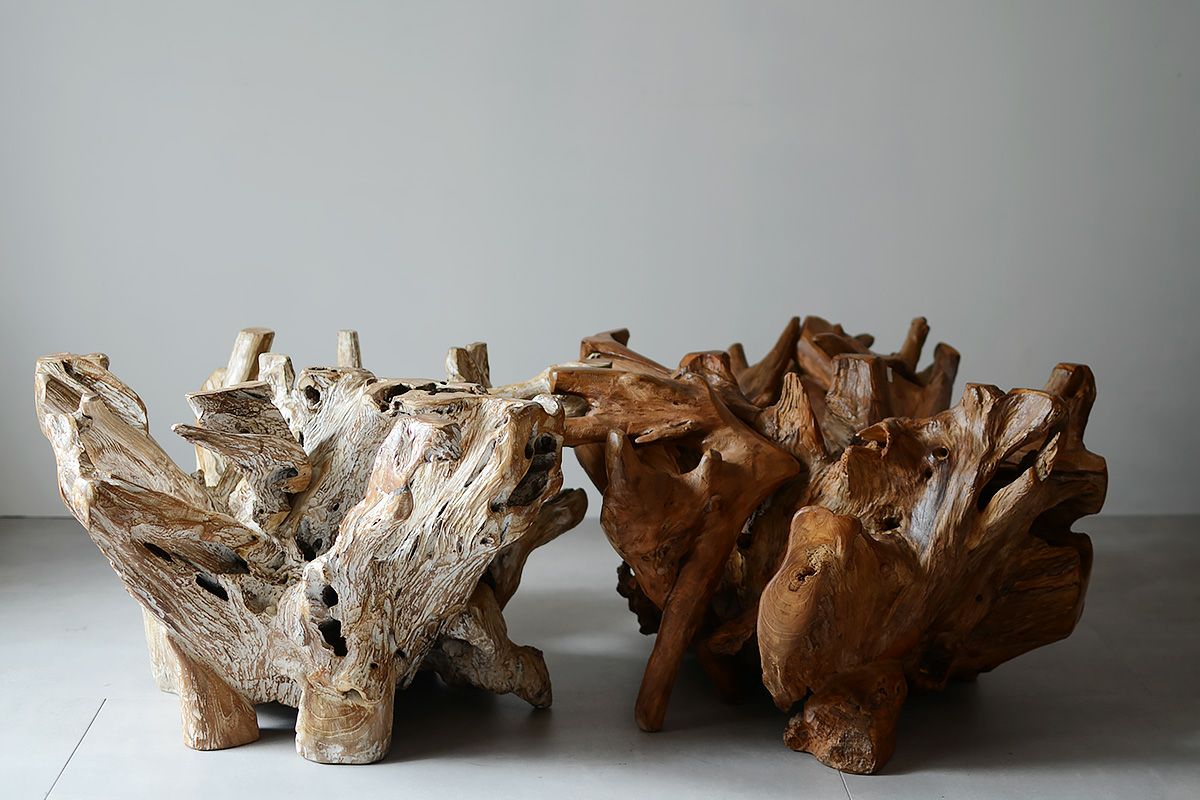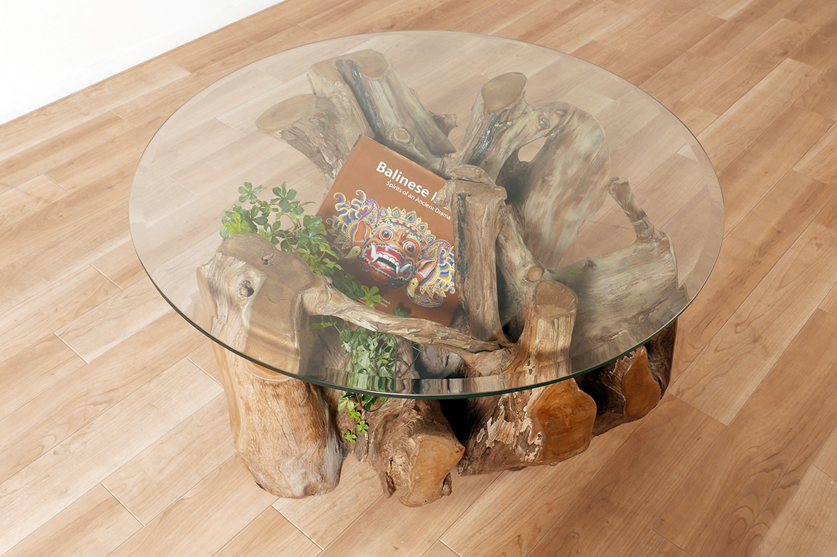 自然のままのワイルドで美しい曲線をそのままに表現したローテーブルです。木の根っこ部分を使った土台は、すべて異なる1点ものです。見る角度によっても、古木の模様が様々に感じられます。自然が育むアーティスティックな表情を楽しめるローテーブルです。