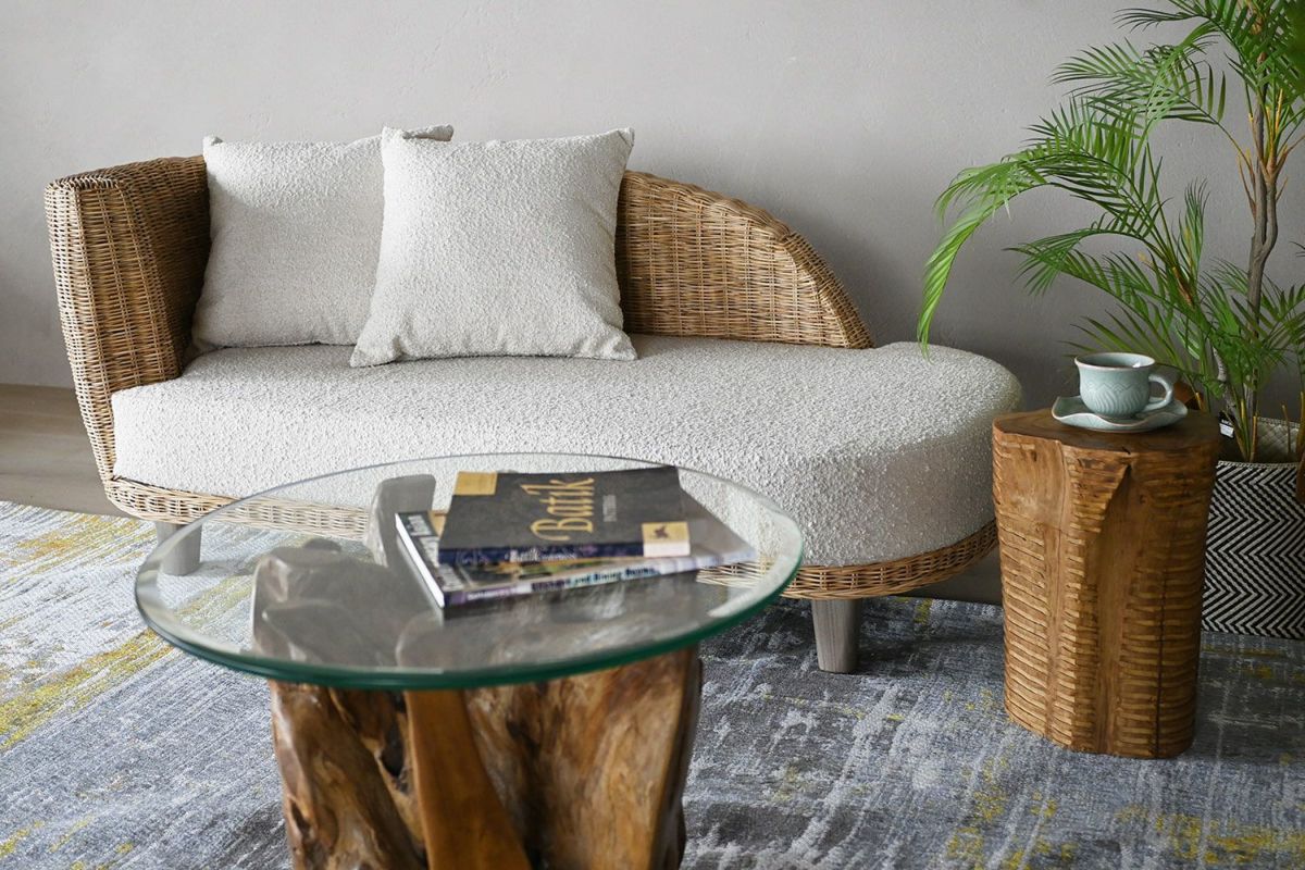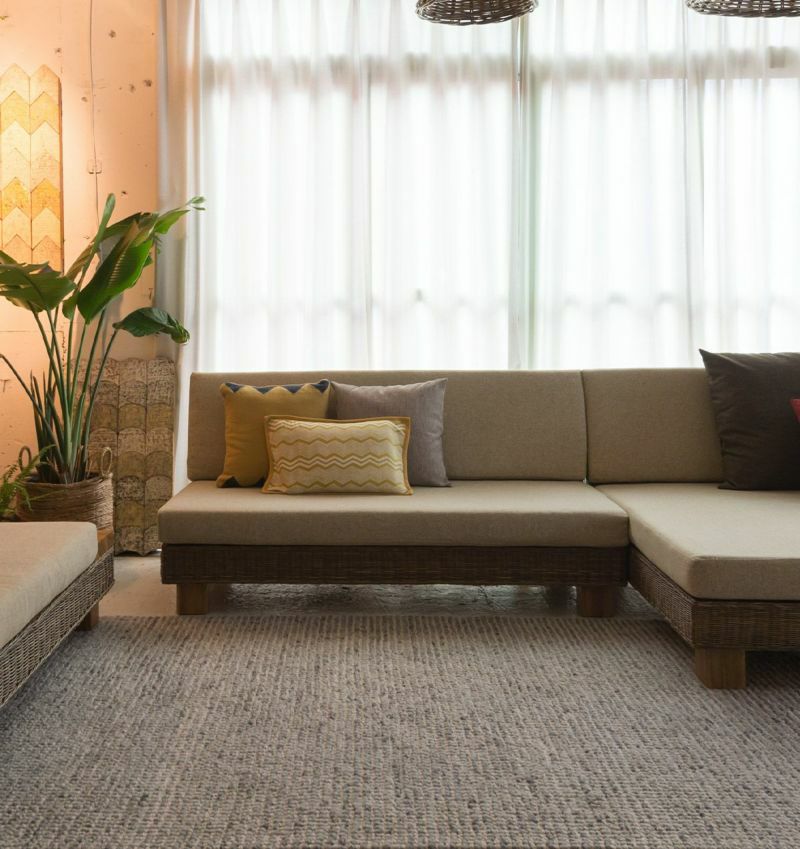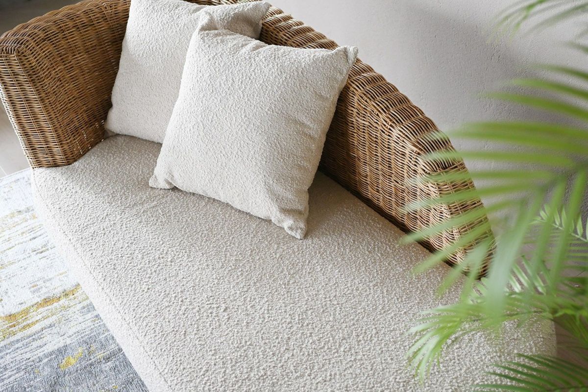 ラタンとブークレの組み合せで爽やかで心落ち着く空間を