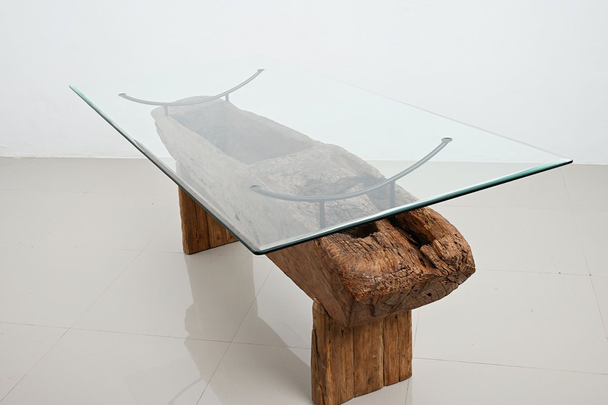 - 一点ずつ土台の古木の形が異なるテーブルです。ガラスはインドネシアの再生ガラスを使用しています。微かな傷やくすみのある場合もございますが、日常使用に問題ございません。予めご了承ください。