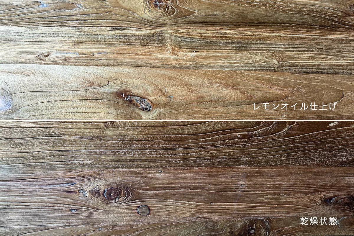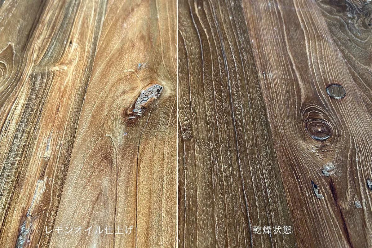 木の表面は時間が経つと汚れや乾燥によってくすみがちになりますが、レモンオイルを使うことで木材本来のツヤやしっとりとした質感がよみがえります。オイルは木にしみ込んで表面をコーティングすることで、人工的な光沢ではなく、しっとりとしたナチュラルな輝きを生み出します。