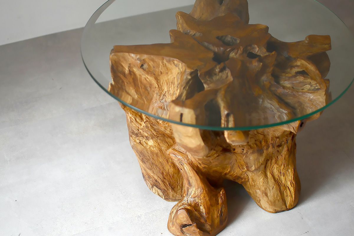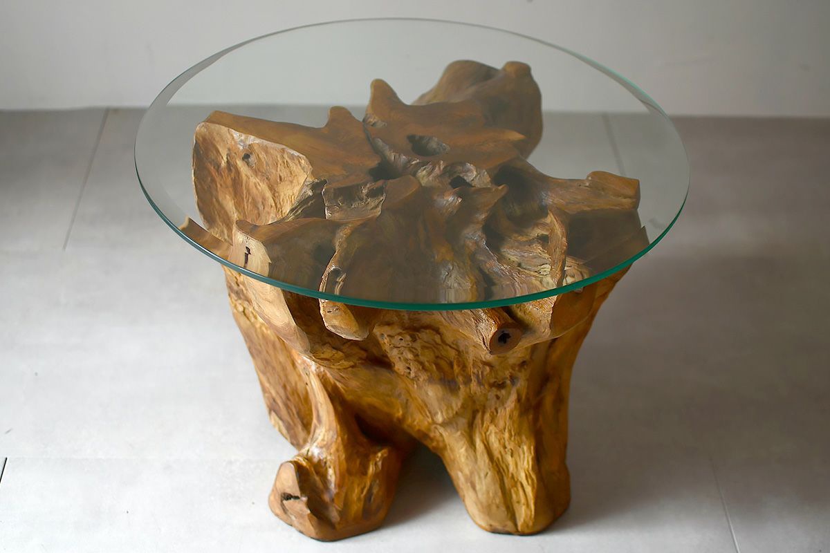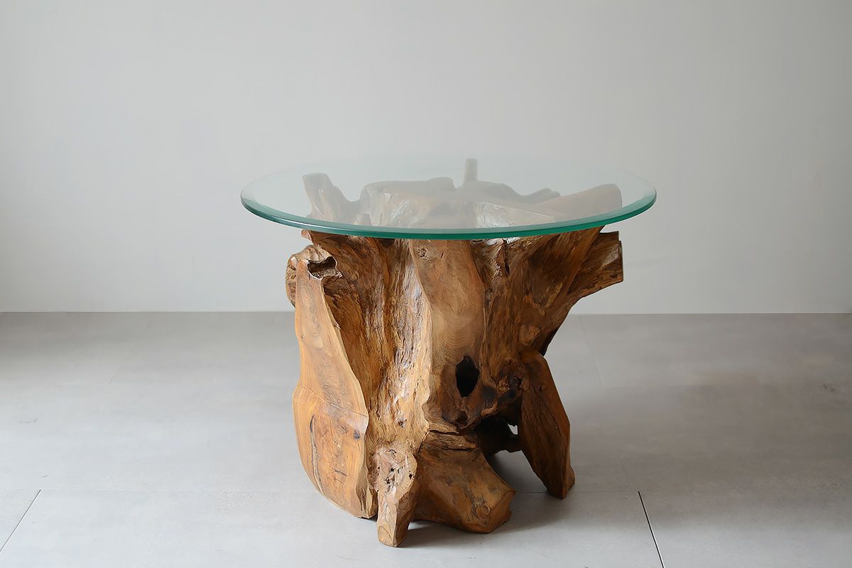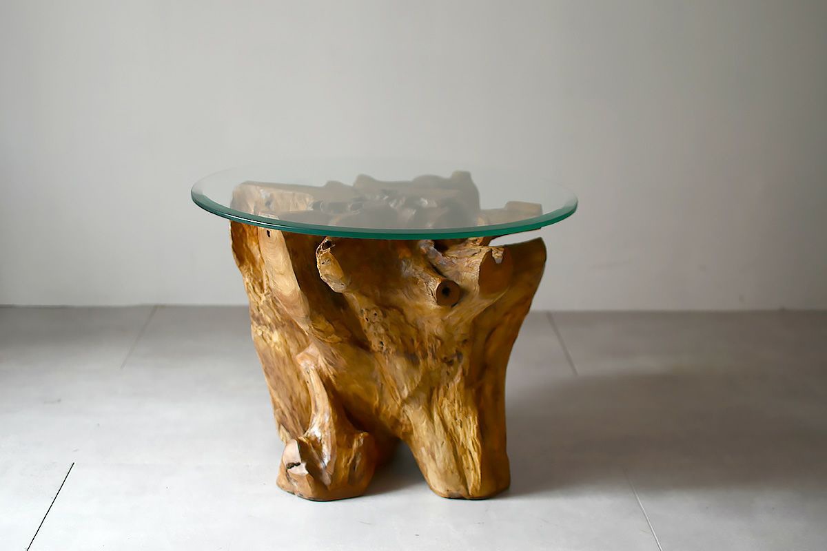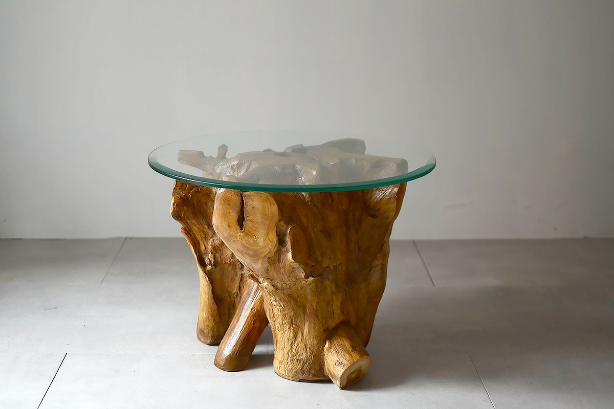 自然のままのワイルドで美しい曲線をそのままに表現したローテーブルです。木の根っこ部分を使った土台は、すべて異なる1点ものです。見る角度によっても、古木の模様が様々に感じられます。自然が育むアーティスティックな表情を楽しめるローテーブルです。