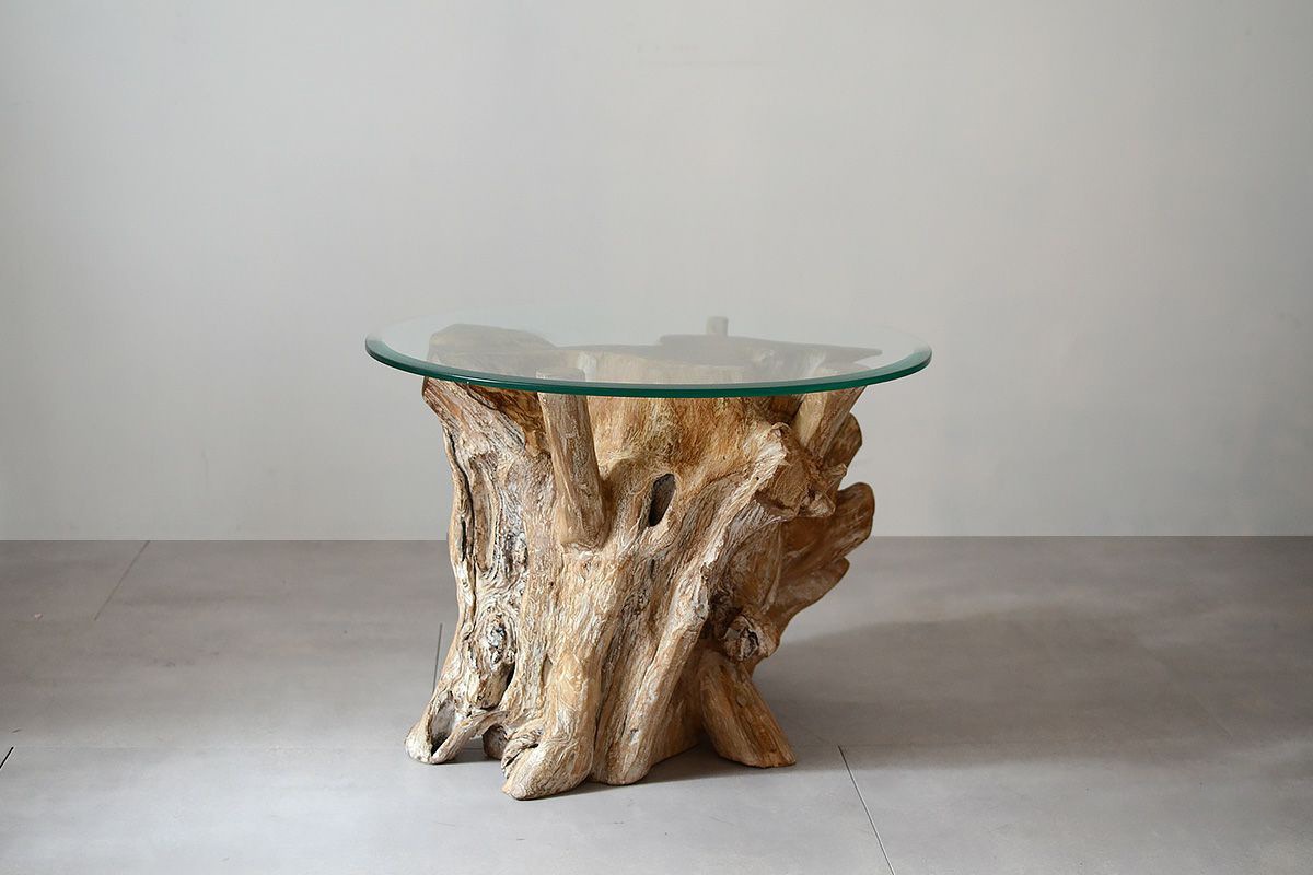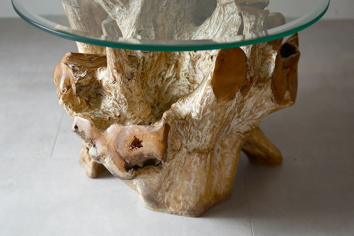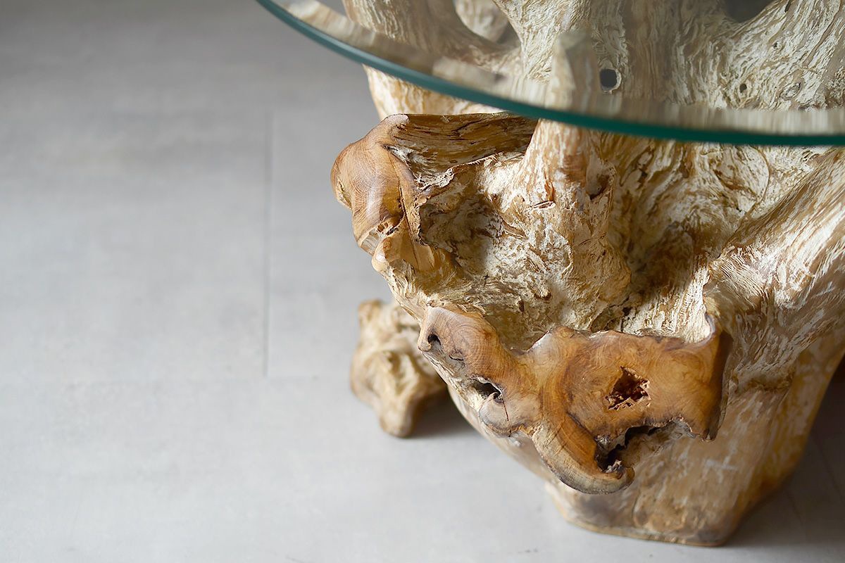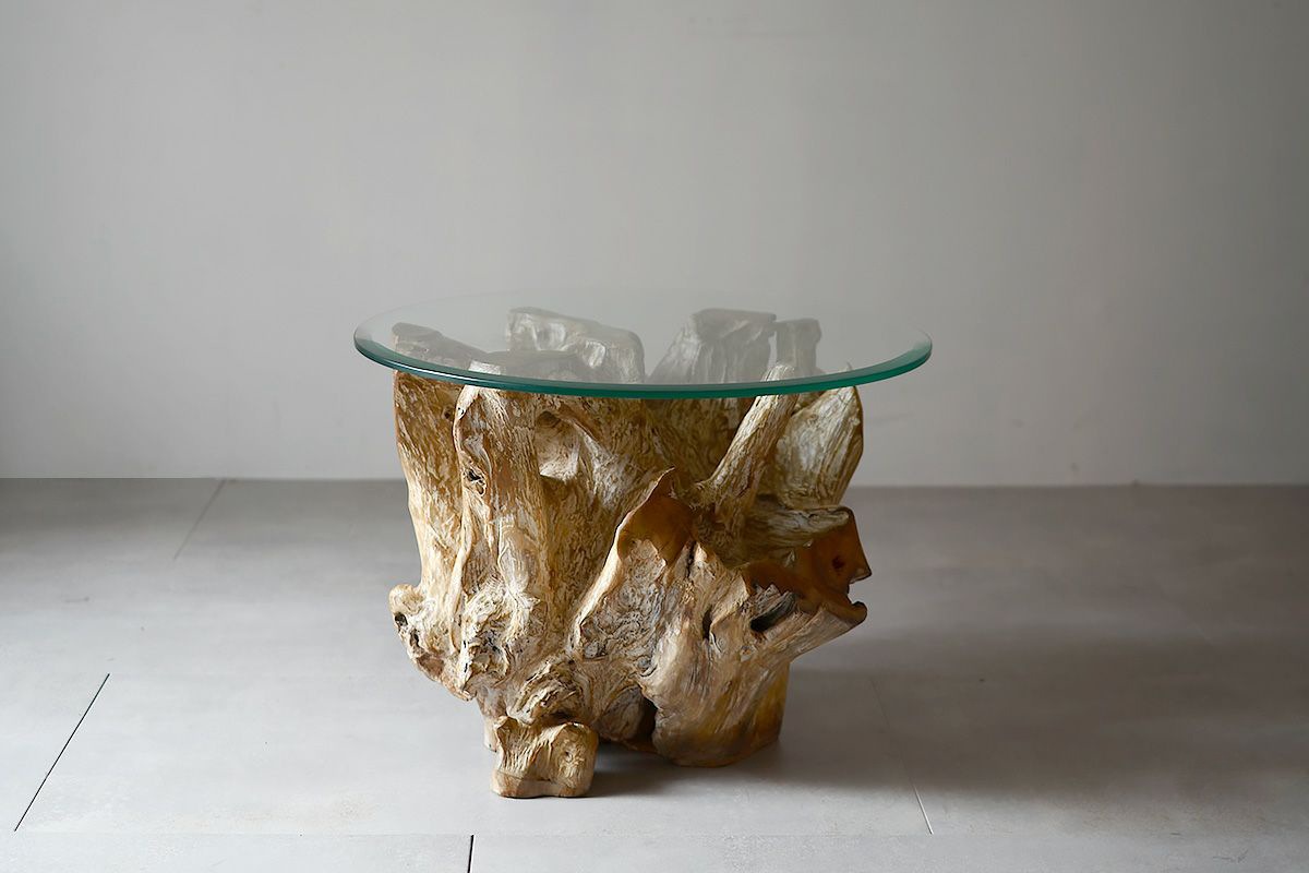 自然のままのワイルドで美しい曲線をそのままに表現したローテーブルです。木の根っこ部分を使った土台は、すべて異なる1点ものです。見る角度によっても、古木の模様が様々に感じられます。自然が育むアーティスティックな表情を楽しめるローテーブルです。
