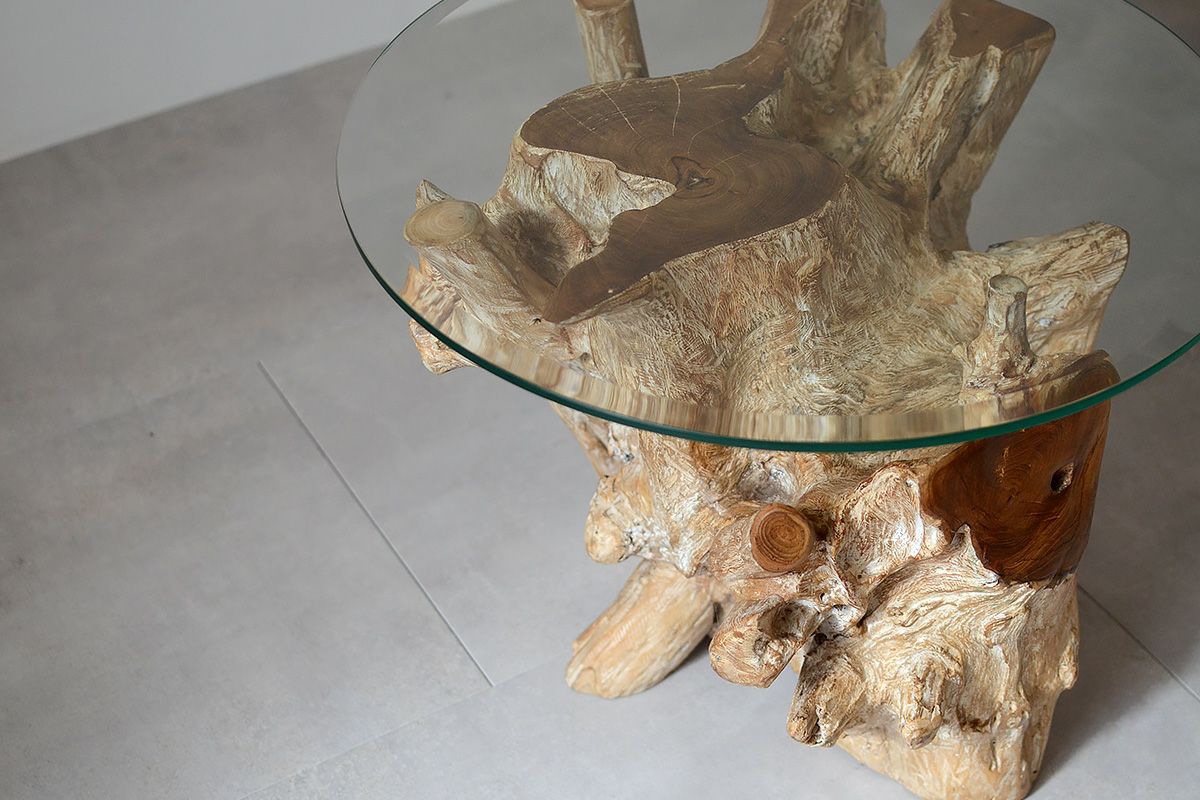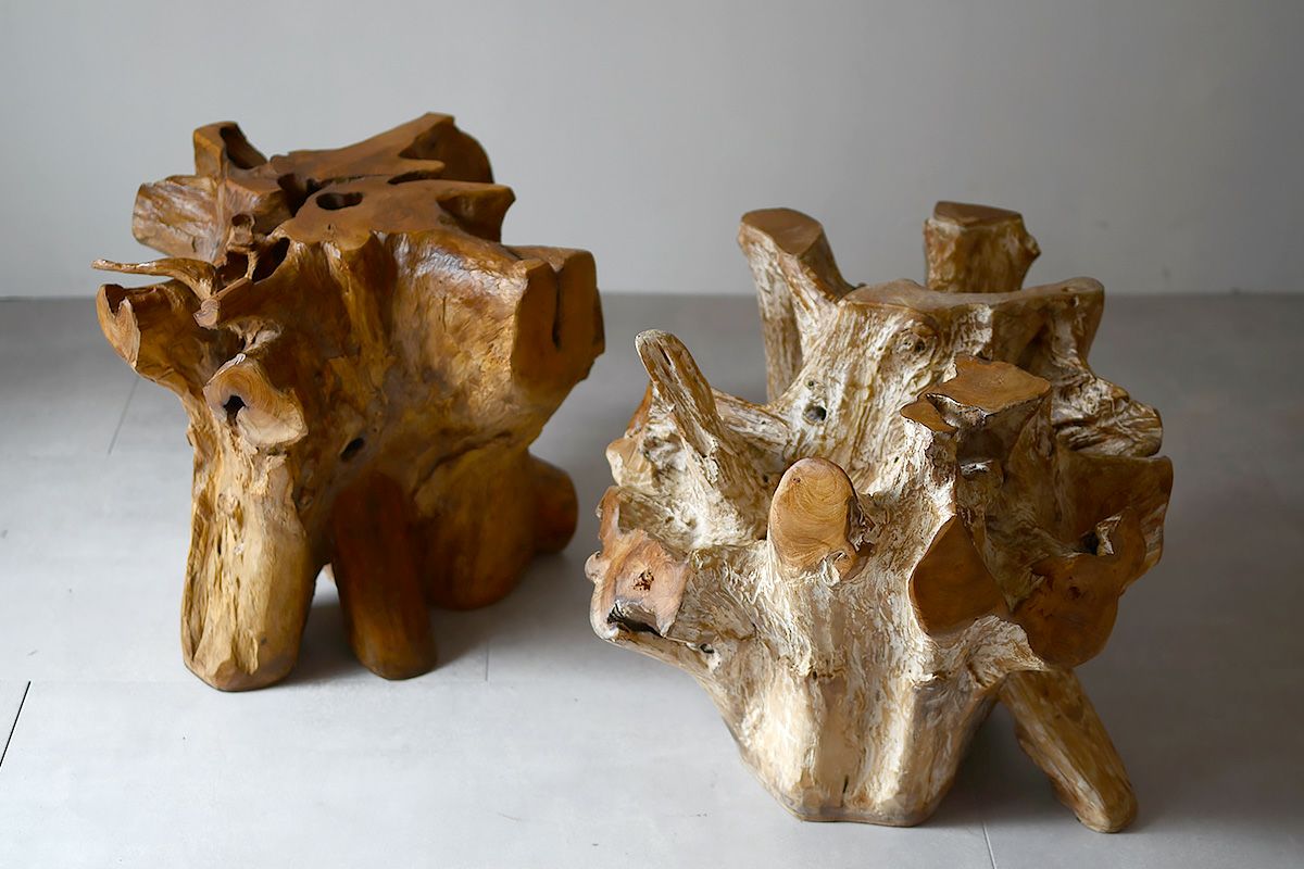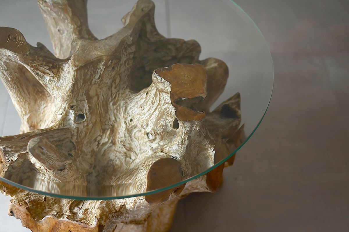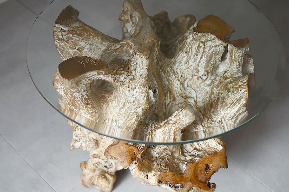 自然のままのワイルドで美しい曲線をそのままに表現したローテーブルです。木の根っこ部分を使った土台は、すべて異なる1点ものです。見る角度によっても、古木の模様が様々に感じられます。自然が育むアーティスティックな表情を楽しめるローテーブルです。