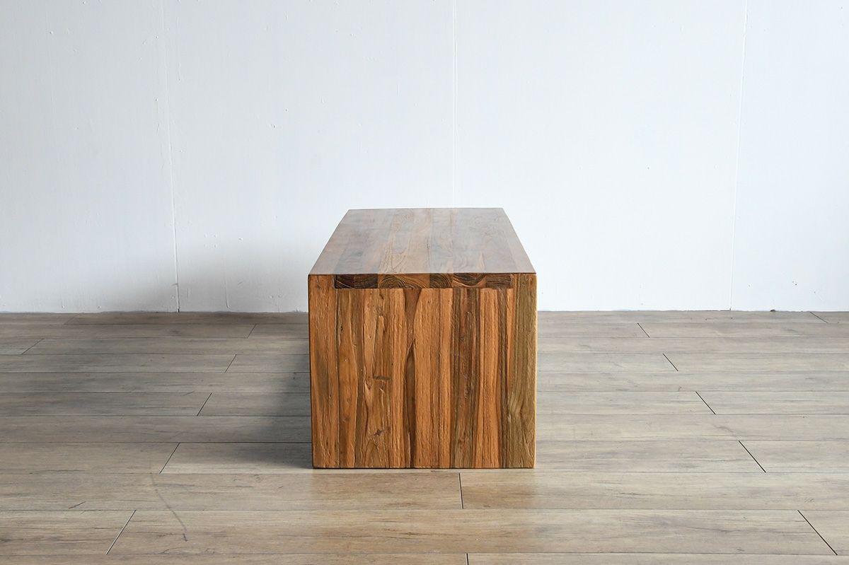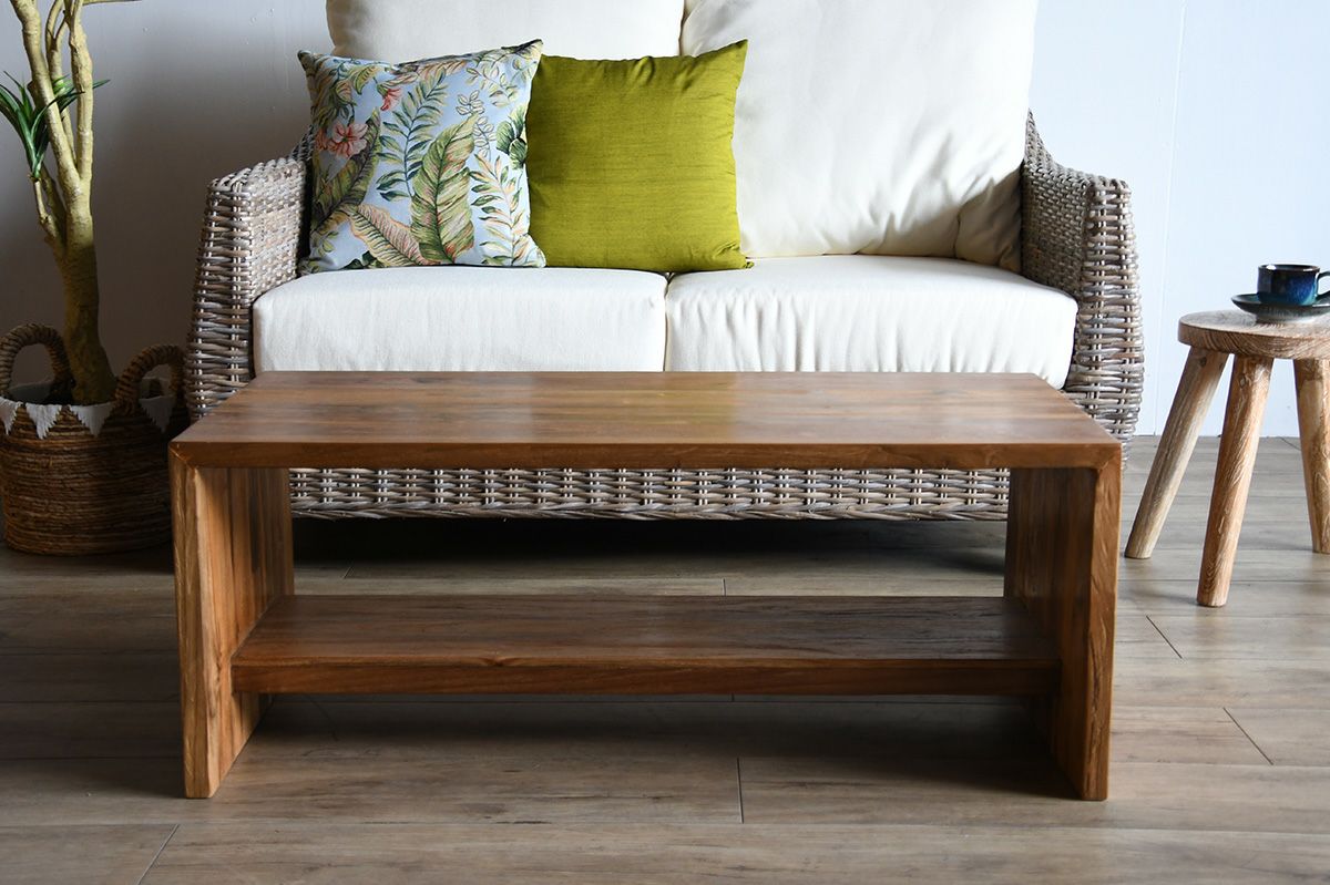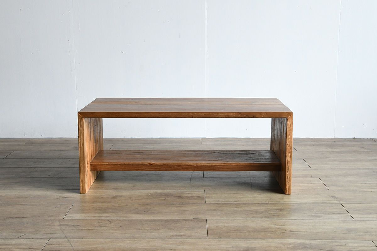 シンプルなデザインに映えるチーク材の重厚感が魅力的。テイストにこだわらず、あわせられる万能なローテーブルです。ひとつひとつチーク材の節目は異なります。風合いのある木目は使い込むうちに味のある色味を帯びてきます。天板の厚みは約3cm。しっかりとした重みを感じるローテーブルです。