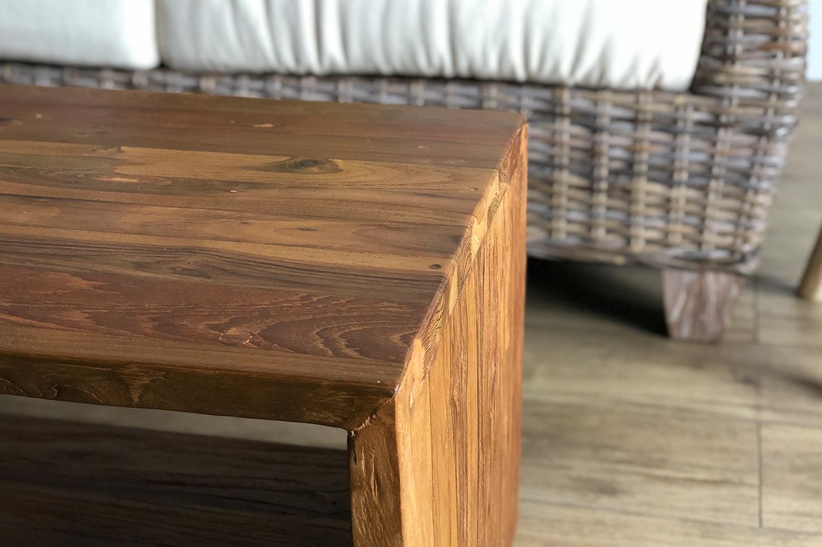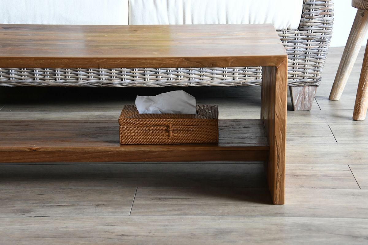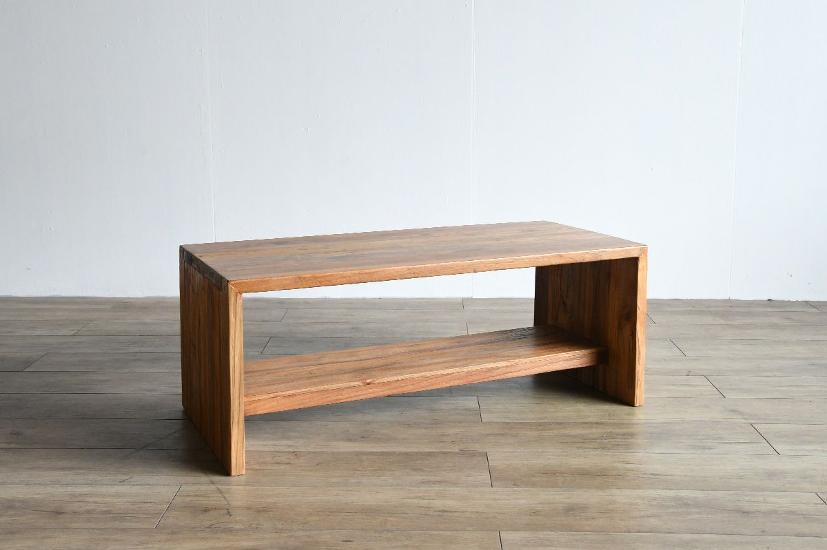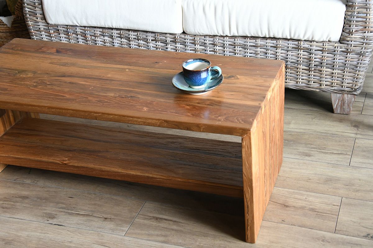 シンプルなデザインに映えるチーク材の重厚感が魅力的。テイストにこだわらず、あわせられる万能なローテーブルです。ひとつひとつチーク材の節目は異なります。風合いのある木目は使い込むうちに味のある色味を帯びてきます。天板の厚みは約3cm。しっかりとした重みを感じるローテーブルです。