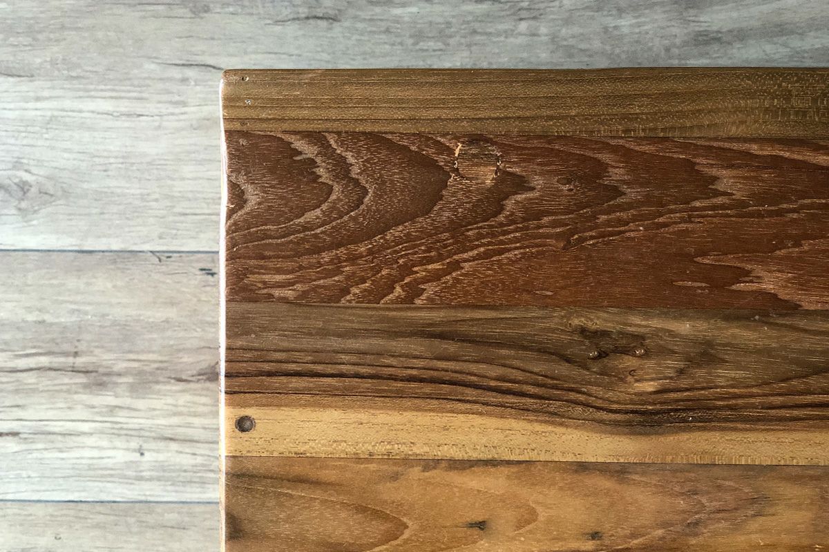重硬で強靱、さらに耐久性・耐水性ともに優れた高級銘木のひとつです。無塗装でも表面にワックスを塗ったようなつやがあり、伸縮率も小さく狂いが少ないとされているので家具のほかにも船舶や建築材料として古くから使用されています。