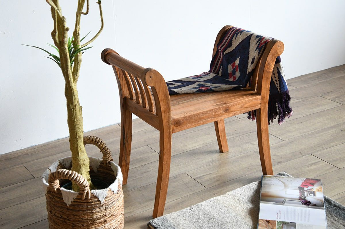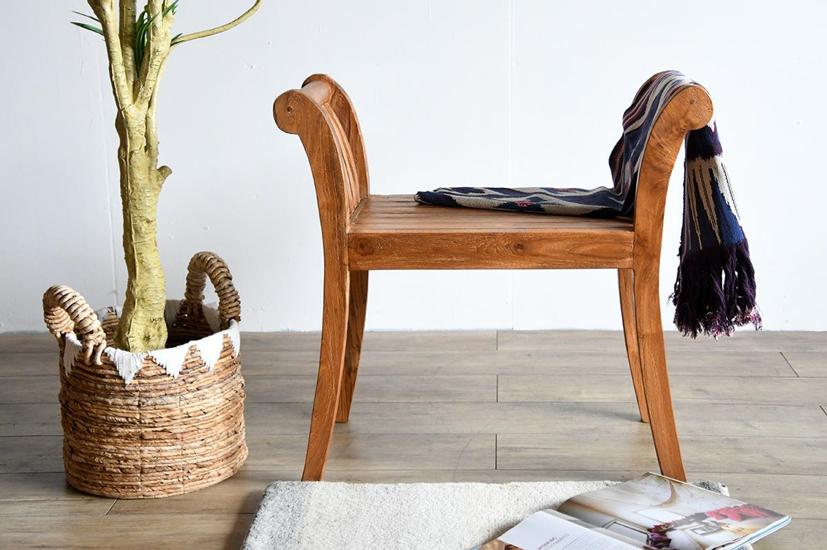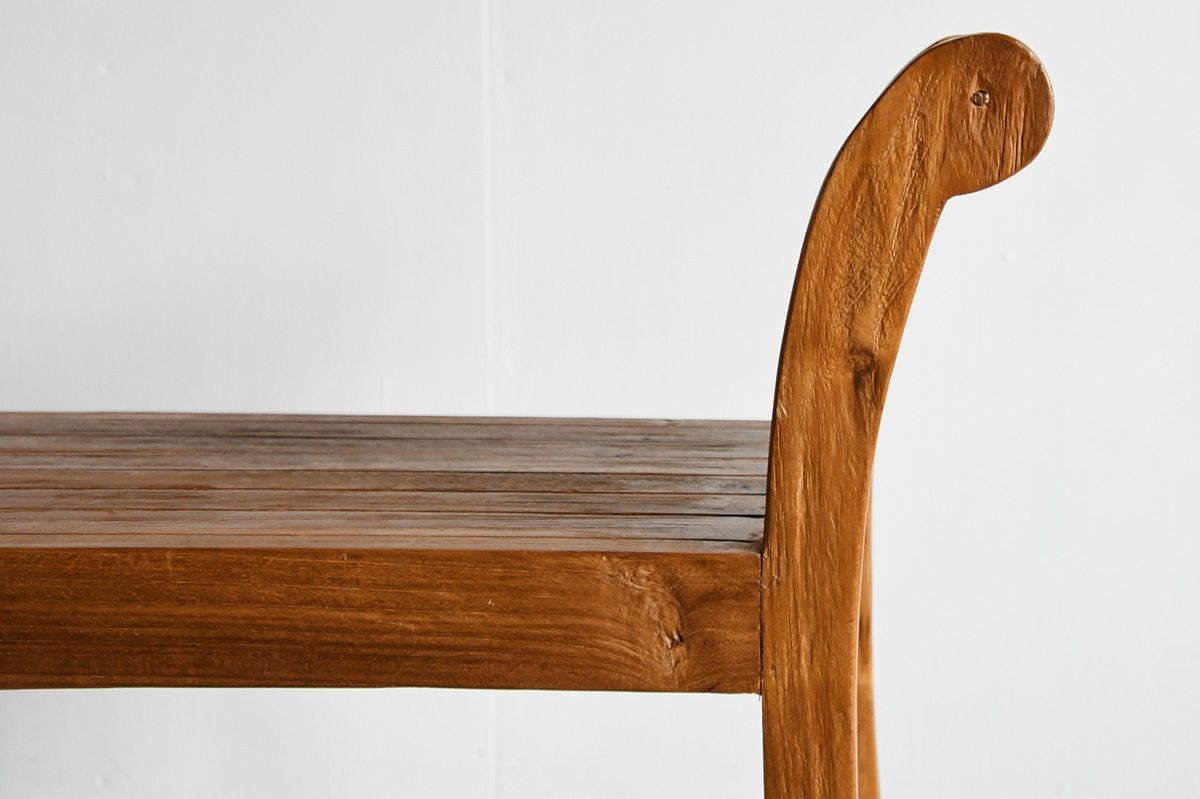 両端の持ち上がりが特徴で、バリ島では有名なデザインであるこのカルティニベンチ。リゾートホテルのエントランスや室内に置かれることも多いので、見たことのある方もいるかもしれません。カルティニとは女性の名前が由来になっています。優美な曲線のデザインは、癒しのリゾート空間にぴったりです。