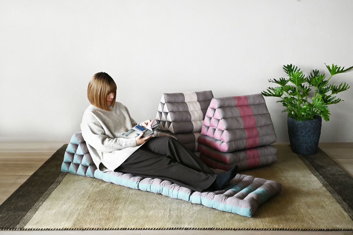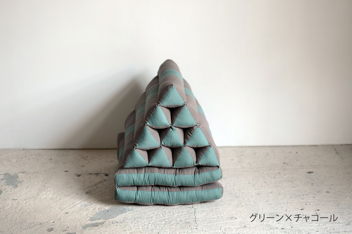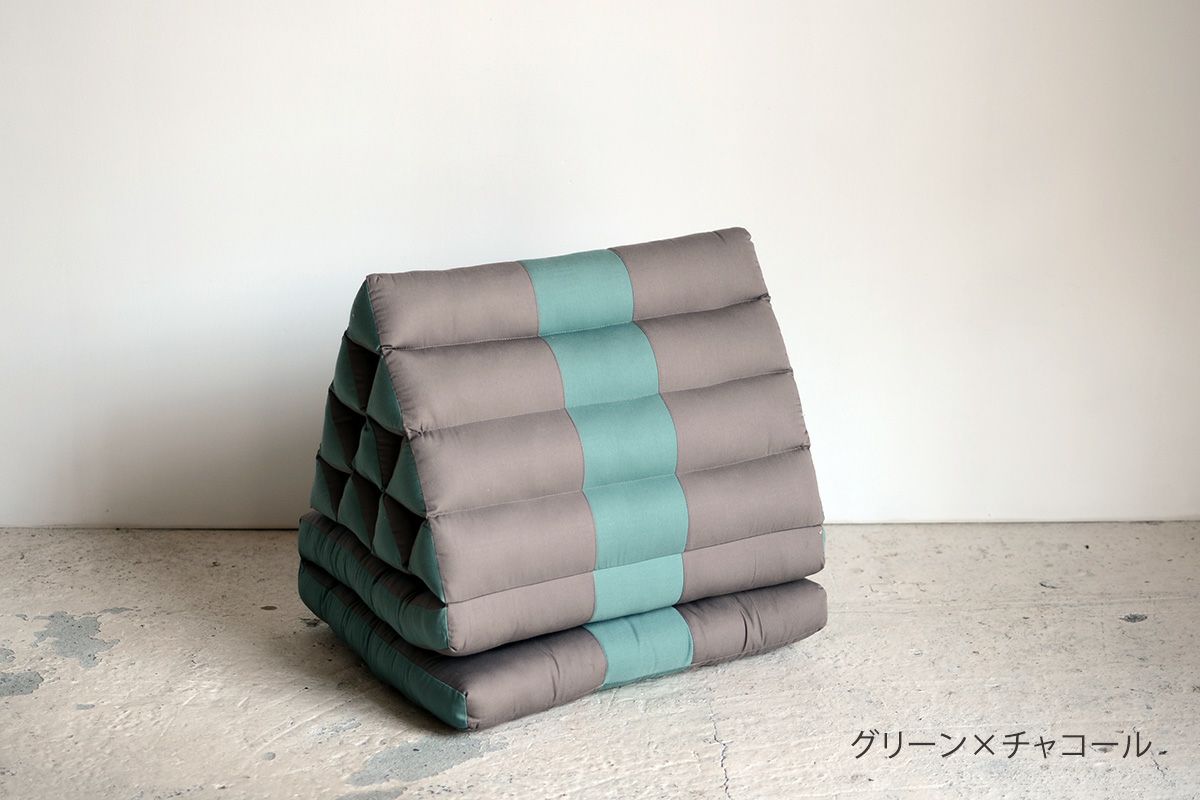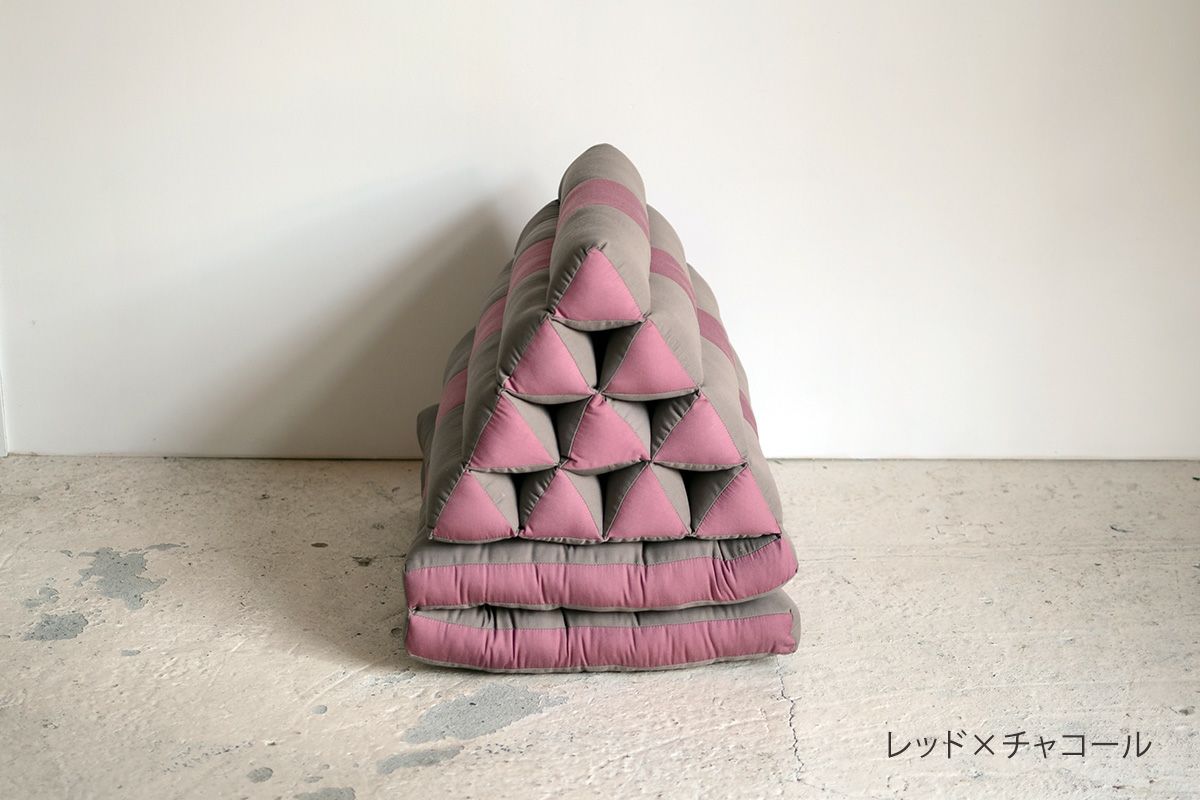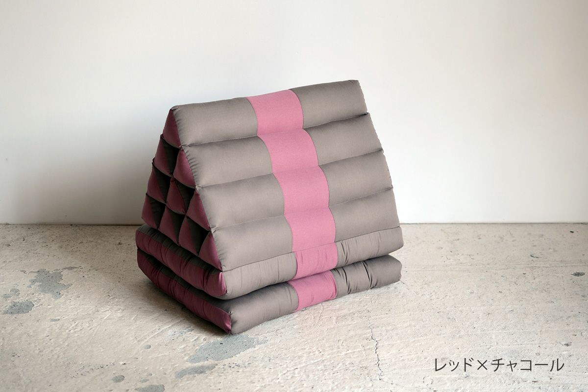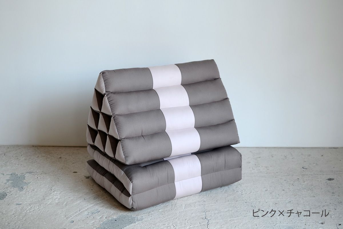 タイのアジアンリゾートでよく見られるクッションなので、タイクッションとも呼ばれる三角クッション。枕とクッションを一緒にしたようなそのデザインは、体を休めるのに最適なデザインです。三角部分を背もたれにして、ゆったりと自由な体勢でくつろぐのが基本。三角部分に肘をついて、座ることもできます。