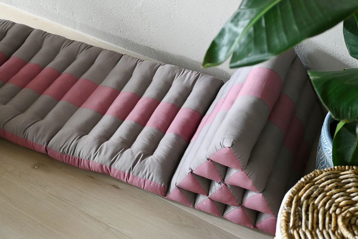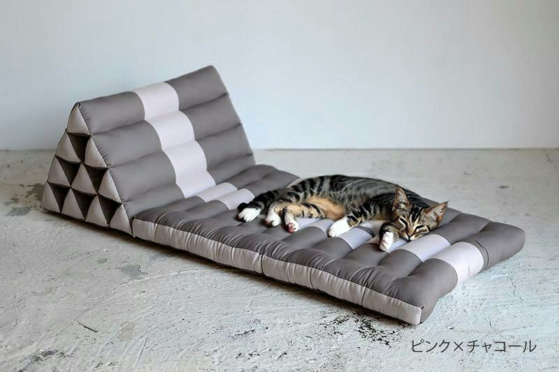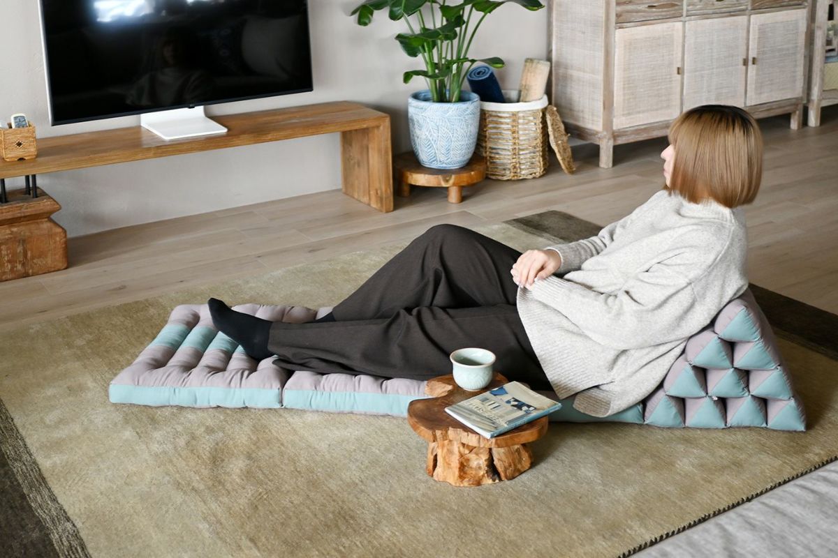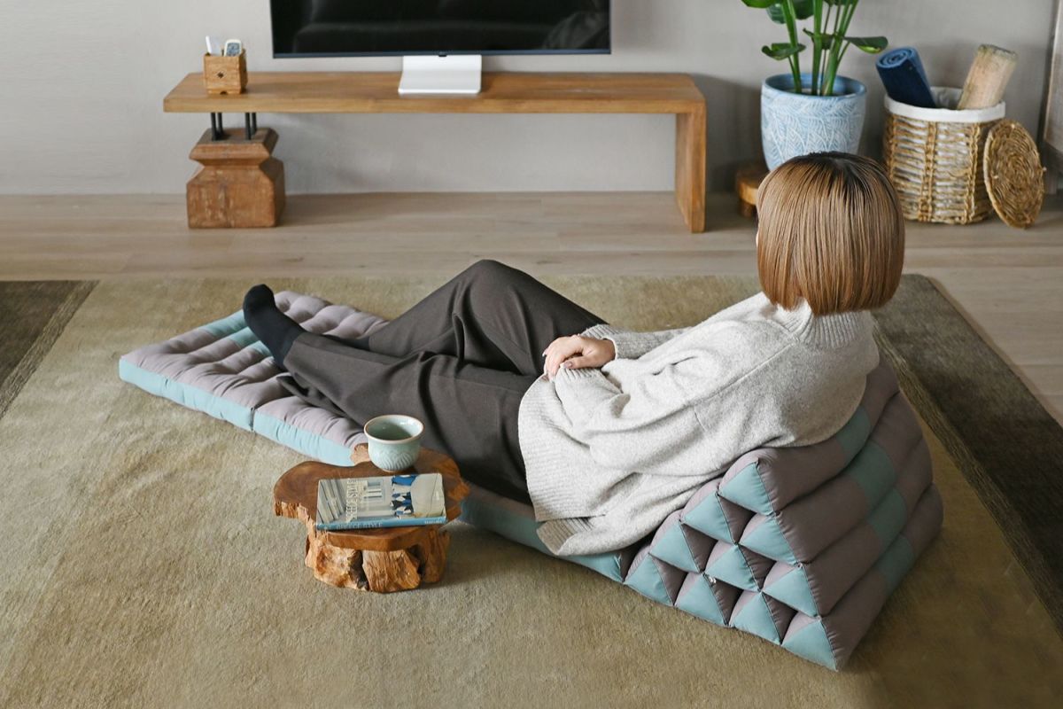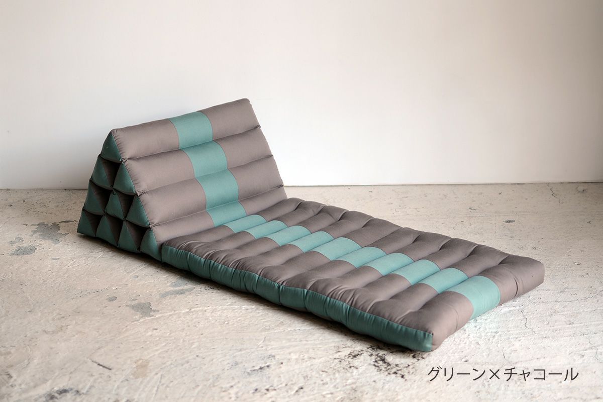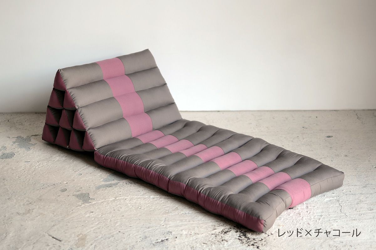タイのアジアンリゾートでよく見られるクッションなので、タイクッションとも呼ばれる三角クッション。枕とクッションを一緒にしたようなそのデザインは、体を休めるのに最適なデザインです。三角部分を背もたれにして、ゆったりと自由な体勢でくつろぐのが基本。三角部分に肘をついて、座ることもできます。