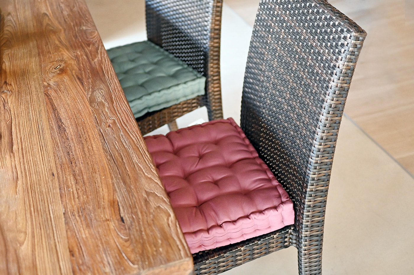板座のベンチやチェアに合わせてチェアパッドとしてもお使いいただけます。厚みのあるクッションなので、長時間座っていても疲れにくく座り心地がUPします。