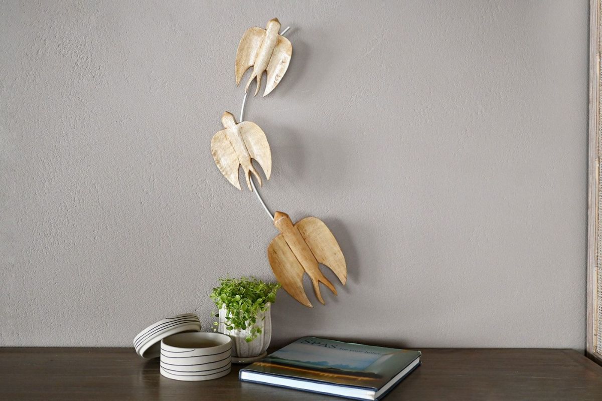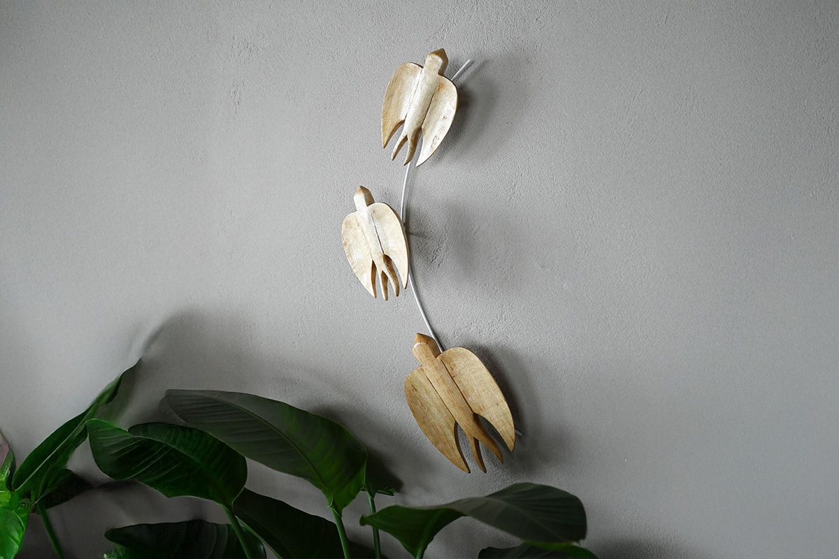 3羽の鳥が並んだシンプルなデザインは取り入れやすさがあります。エントランスからリビングルームまで、あらゆるシーンにマッチします。ナチュラルテイストから北欧スタイル、和のインテリアにもよく合うデコレーションです。