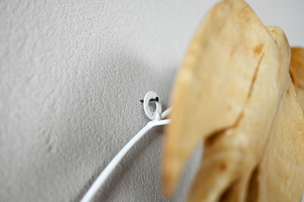 壁掛け用の丸い金具が付いています。ネジなどで壁に固定してお使いください。※取り付け用のビスは付属しておりません。 壁面の材質や強度に応じて使用するネジの種類・長さが異なりますので、取付け箇所の環境に合った取付けネジをご用意ください。