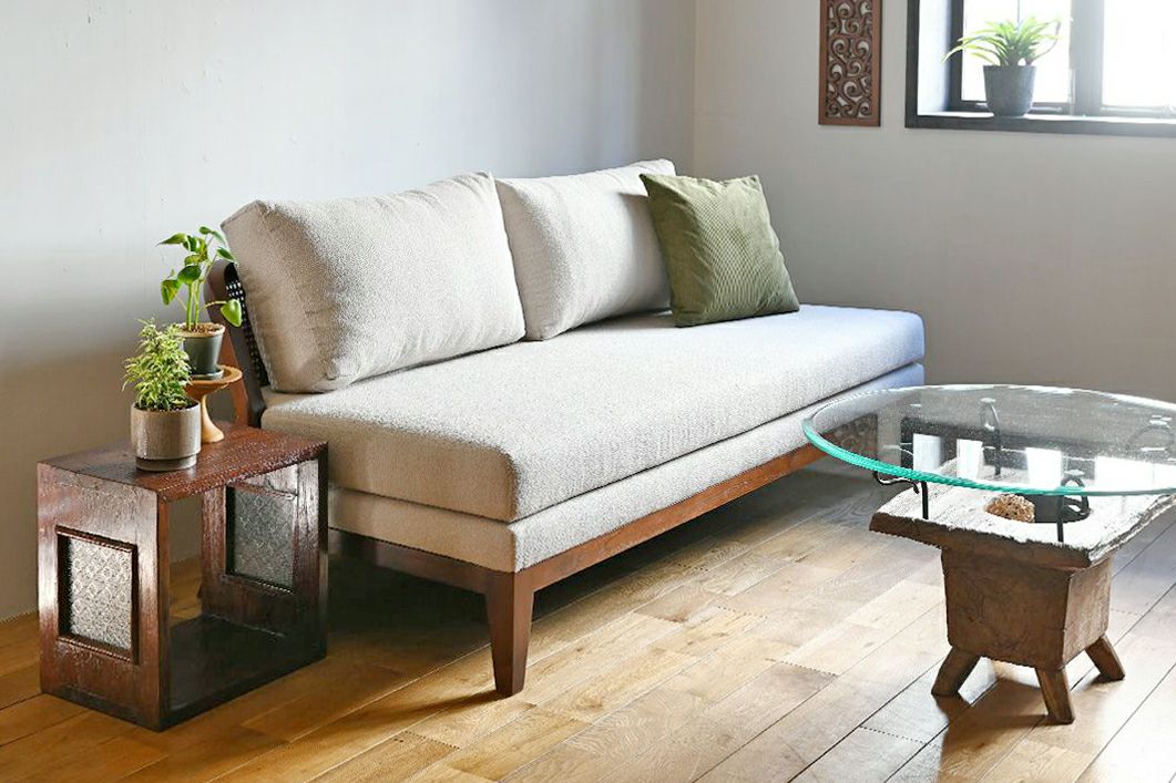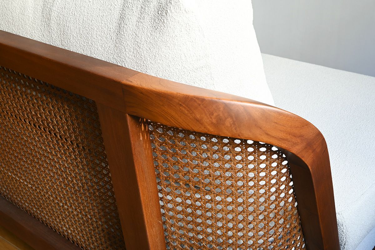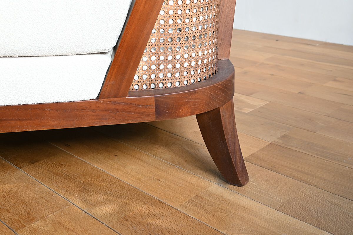 チーク材の温もりとラタンの風合いが絶妙にマッチし、まるで高級リゾートホテルのラウンジにいるかのような雰囲気を演出する3人掛けソファ。座面には厚みのあるクッションを採用し、長期間座っても快適な座り心地を実現してくれる寛ぎのソファです。