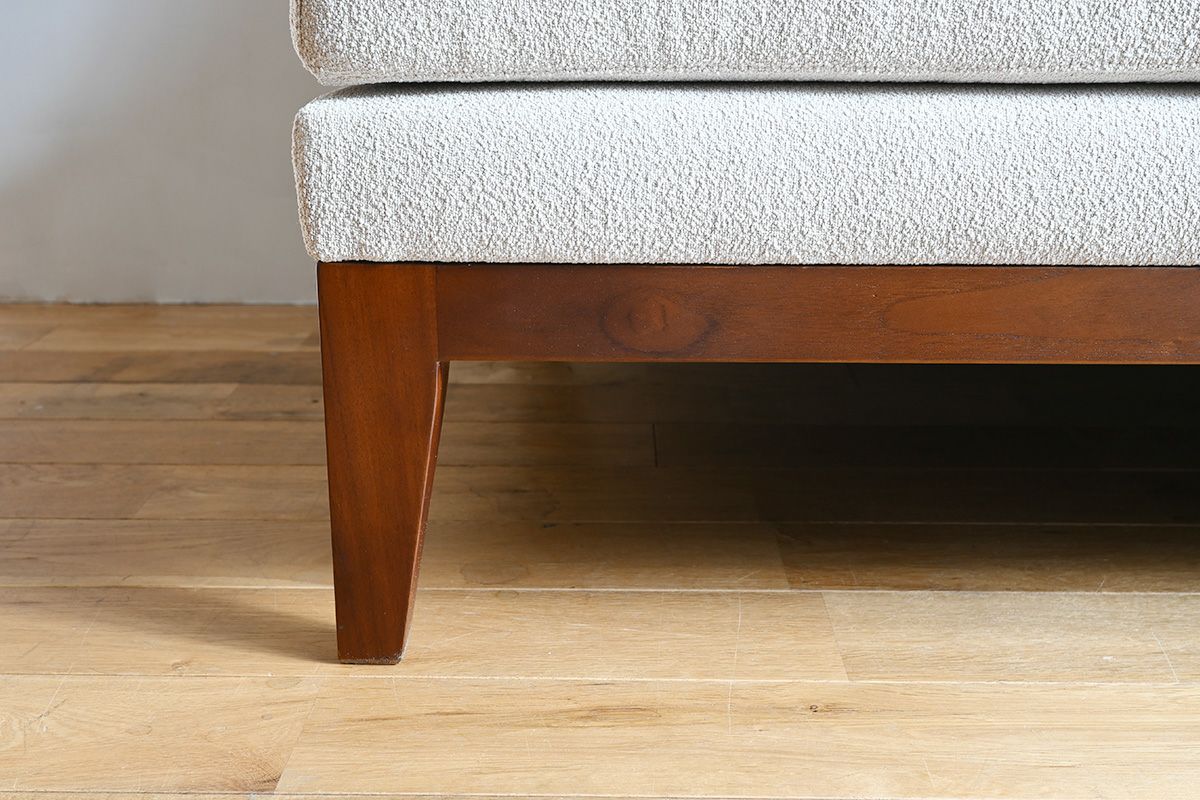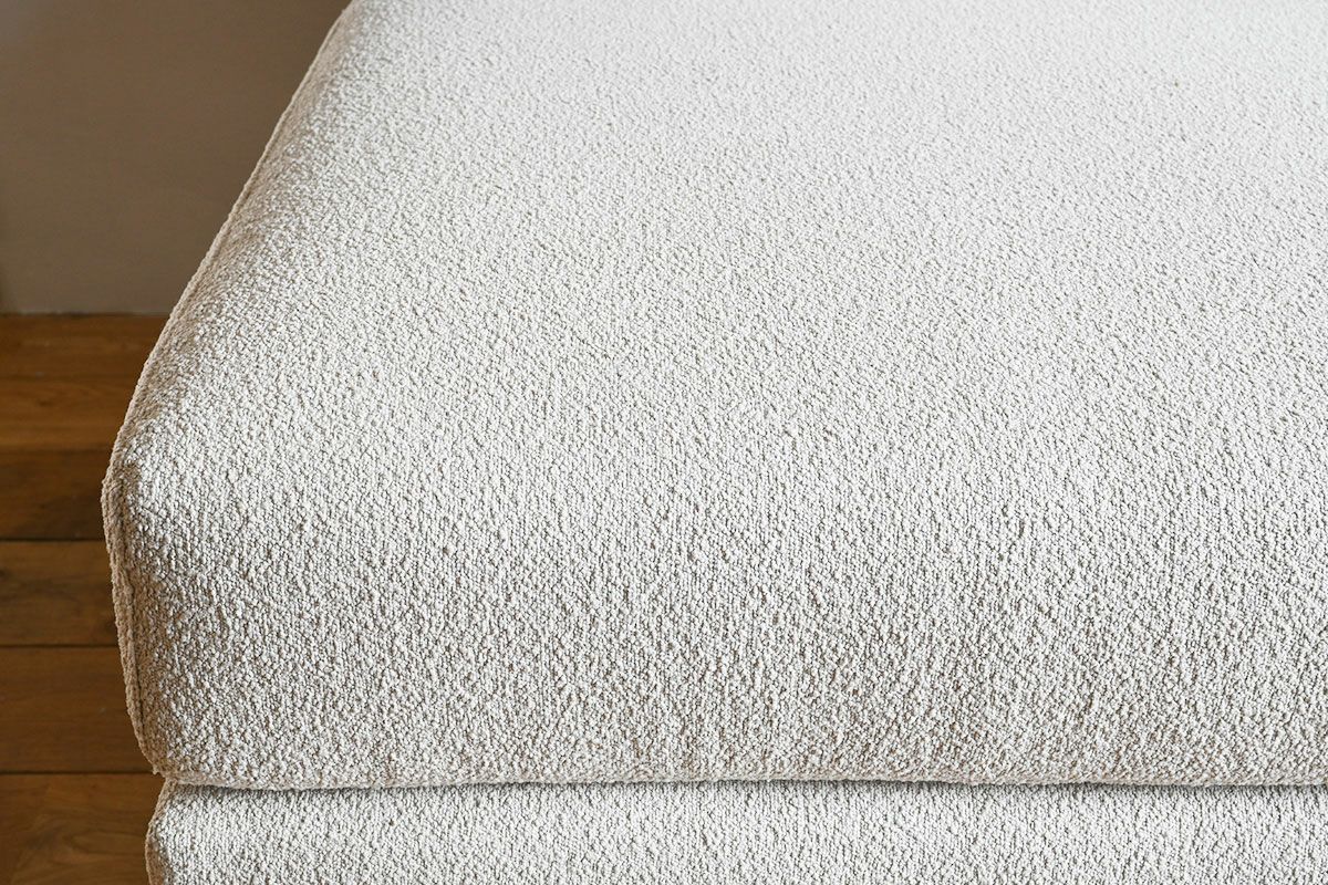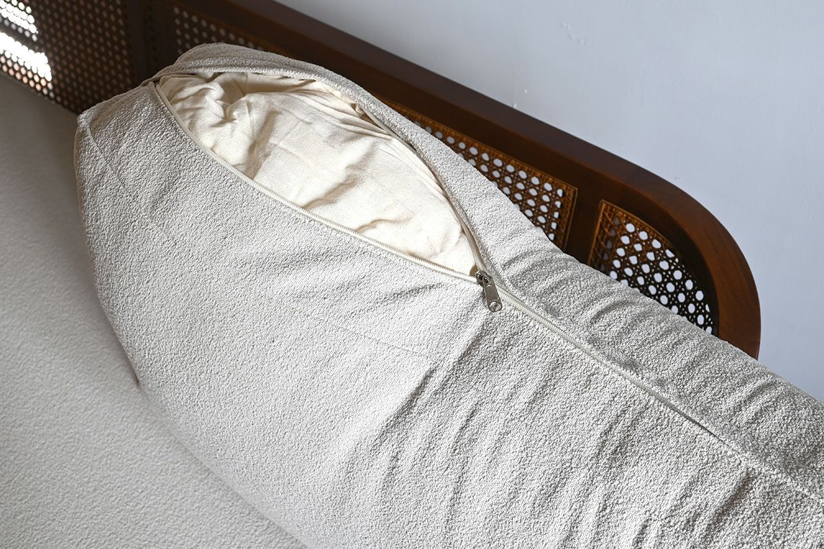 もこもことした肌触りが心地よい、ブークレ生地を採用。日焼けなどの劣化が起こりにくく、長時間座ってもシワが目立ちにくいという特徴があります。背もたれ、座面クッション共にカバーリング仕様で取り外しができますので、汚れが気になったらお洗濯できます。(手洗い推奨)