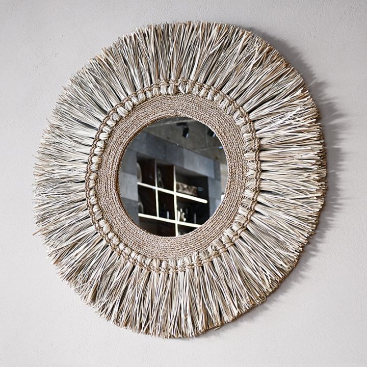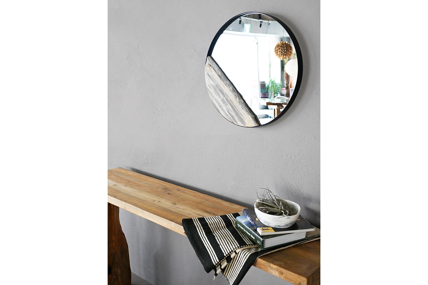 木化石をアクセントにした壁掛けミラー
