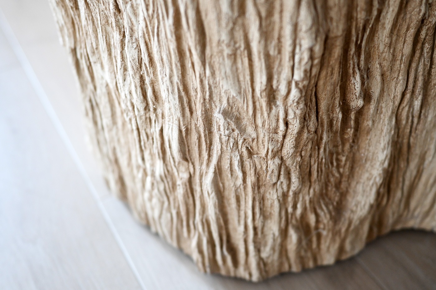 ダイナミックな自然の美しさを活かした潔いデザインです。切り株のように見えるサイドのデザインも鉱物の質感によりラグジュアリーな雰囲気となり、独特の存在感を放ちます。ナチュラルからモダンまで幅広いインテリアに調和します。