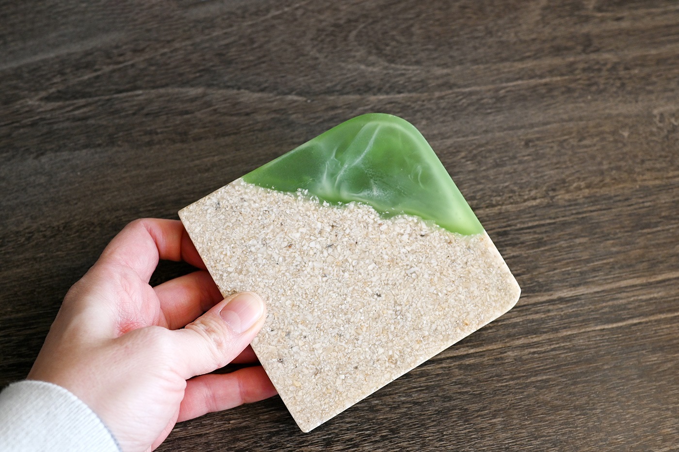 波の揺らぎのようなデザインと海辺の砂を組み合わせたショアラインシリーズ。日常にリゾートのような癒しの空間を印象付けます。淡く光が透き通る抜け感が魅力的なレジンを使用。爽やかで品のあるデザインが存在感を放ちます。
