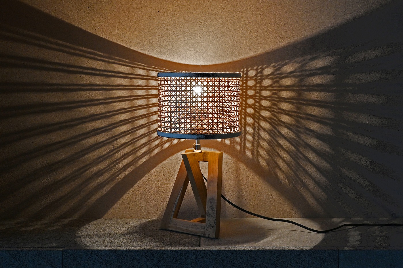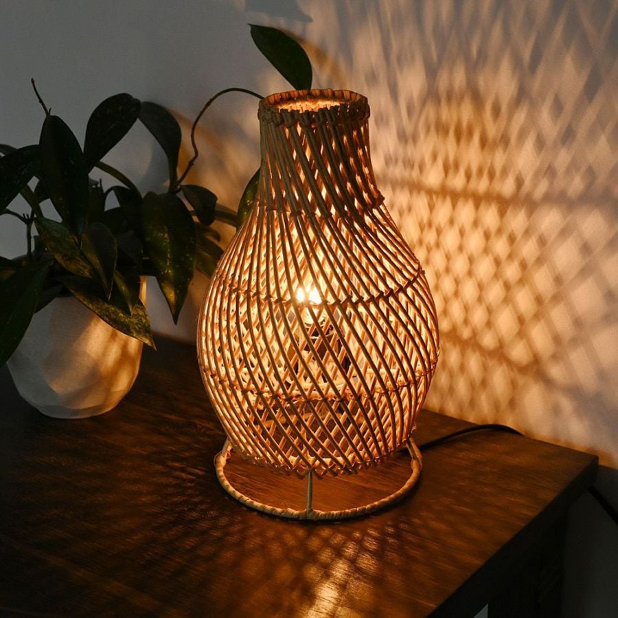 風合い豊かなラタンシェードの卓上ランプ。かごめ編みのシェードから広がる細かな陰影が雰囲気ある空間演出になります。ナチュラルテイストから和モダンまであらゆるスタイルにマッチにします。ソファ脇やベッドサイド、サイドボード上などに置いて、間接照明としてお使いください。