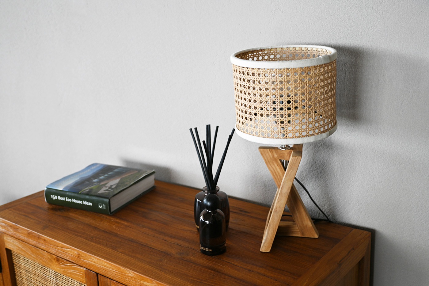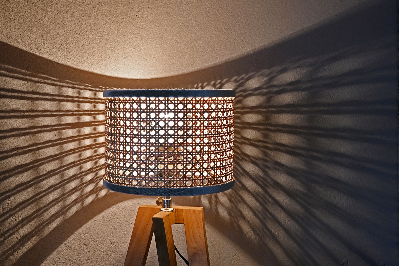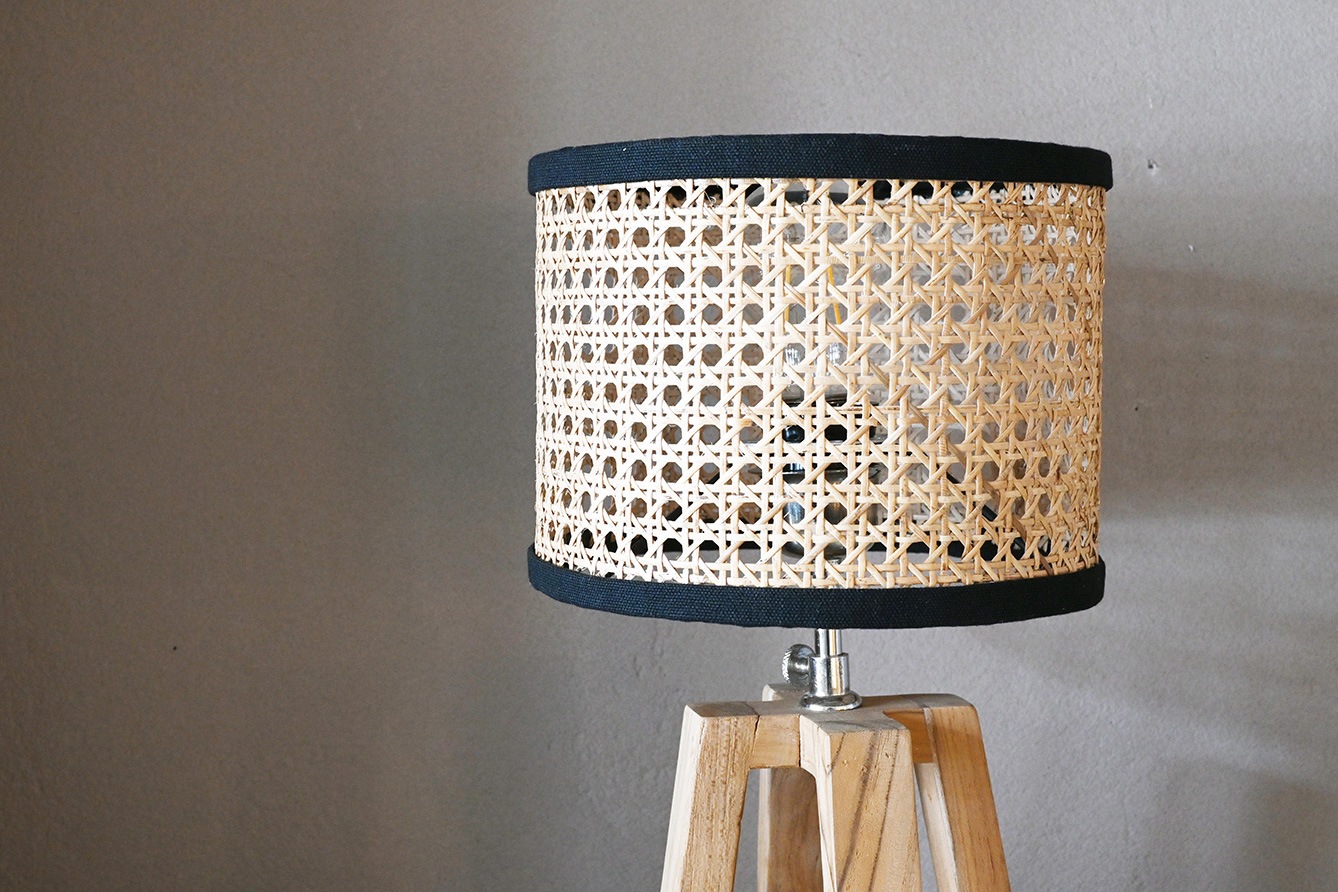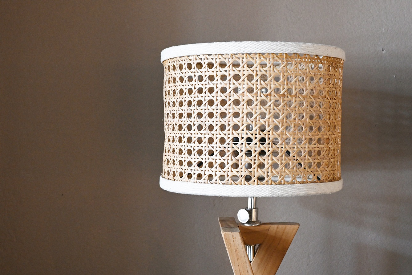 ラタンシェードのやさしいランプ