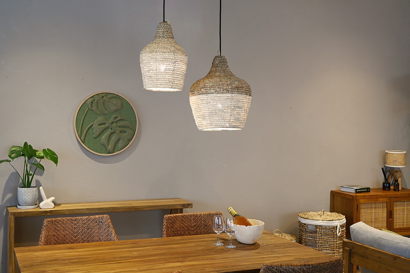 形違いのバリエーションが多いGajih(ガジー)ペンダントランプ。いくつか並べてつけると雰囲気のある空間演出になります。多灯吊りしても圧迫感が出にくいのは、ナチュラルな素材感を素朴な編みのデザインだからこそ。お部屋の雰囲気に柔らかさをプラスするペンダントランプです。