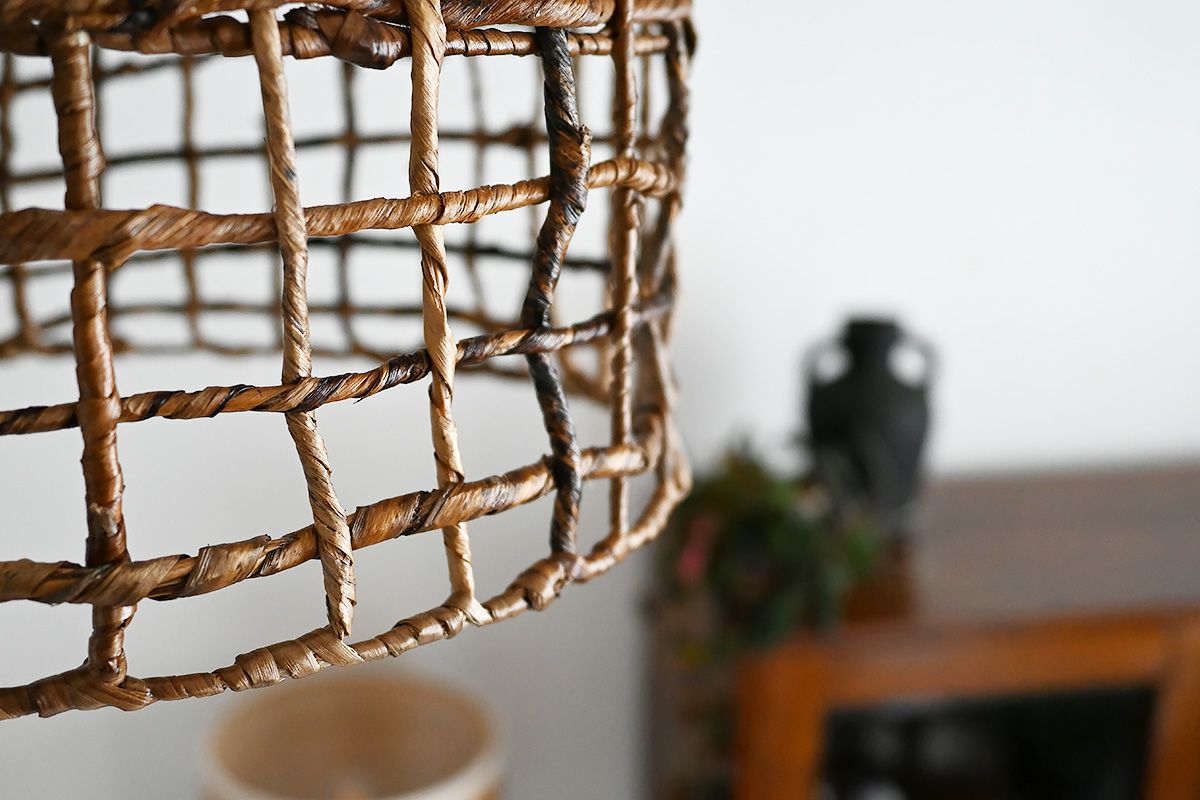 その編み目からこぼれる光は、単なる明るさを越えて、陰影豊かな空間の演出を可能にします。壁や天井に映るやわらかな模様が、ただ照らすだけではない“居心地のよさ”を演出し、リビングやダイニングはもちろん、エントランスや寝室などさまざまなシーンに調和します。